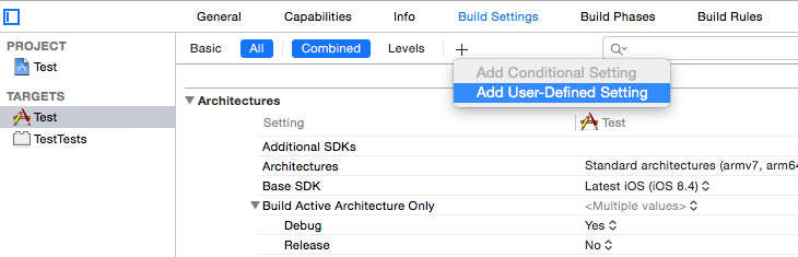 pod 'FLEX', '~> 2.0', :configurations => ['Debug'] XCode也可以设置那些文件被排除在某Build设置之外。导航到 Build Settings ,点击 + ,选择 Add User-Defined Setting 。