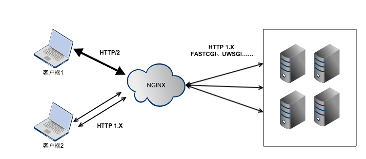 NGINX Plus R7可以同时兼容HTTP 1.1和HTTP/2,这样的实现可以针对不同客户端浏览器对HTTP协议的支持程度,自动选择最优的访问方式。