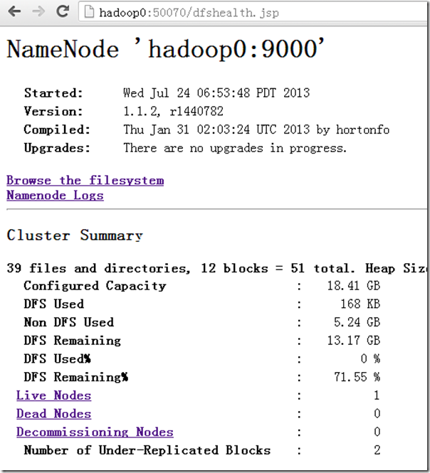 如果读者通过该端口看着这个页面,以为着NameNode节点是存活的。