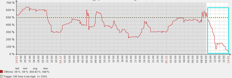 继昨天使用DB time能够快速灵活的定位sql语句之后,发现分析问题更快捷,高效了。今天就牛刀小试,把一个数据库从500%的负载调到不到100%的负载。前提是确实有可提升可改进的空间。