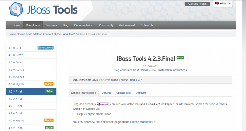 要求jdk6或7的版本,并且要求Eclipse Luna 4.4.2版本。