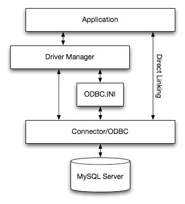 Connector/ODBC(MyODBC驱动程序):实现ODBC API所提供的功能, 它负责处理ODBC函数调用,将SQL请求提交给MySQL服务器,并将结果返回给应用程序.