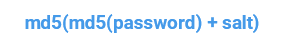 所以,只对密码进行 md5 加密是肯定不够的。聪明的程序员想出了个办法,即使用户的密码很短,只要我在他的短密码后面加上一段很长的字符,再计算 md5 ,那反推出原始密码就变得非常困难了。加上的这段长字符,我们成为盐(Salt),通过这种方式加密的结果,我们称为 加盐 Hash 。比如: