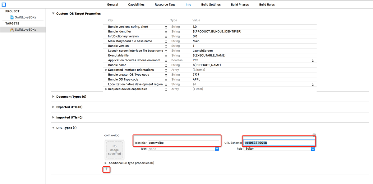 到如下页面根据你的 AppKey 设置 URL Scheme 地址: