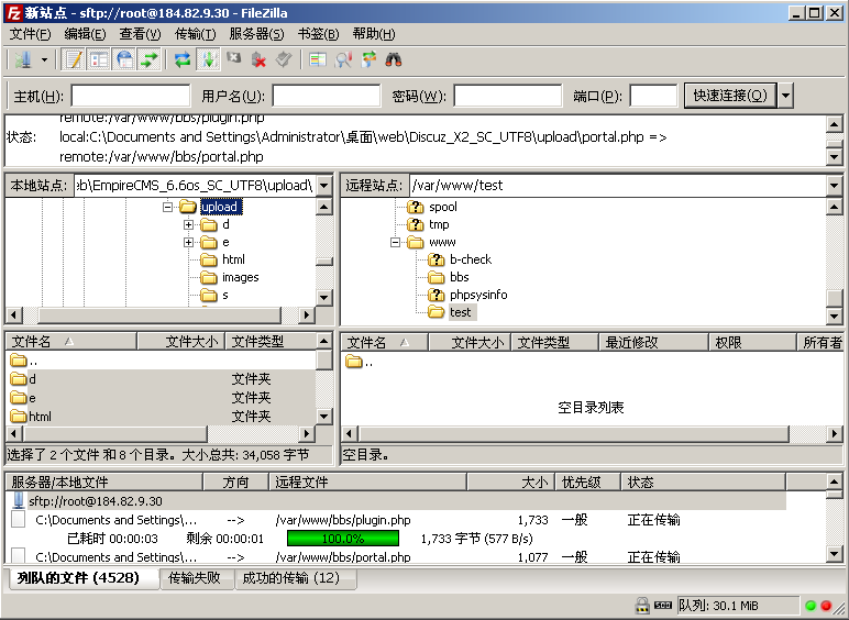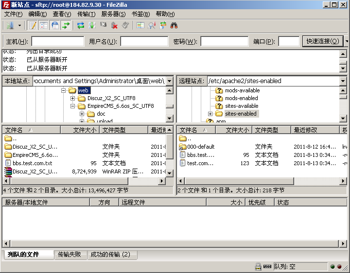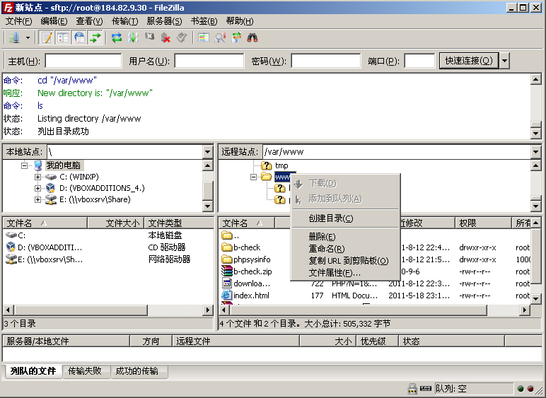 使用前面提到的上传方法,利用 FileZilla 连接服务器,创建这两个目录。