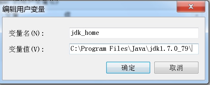 (2)在“xxx的用户变量”列表框中,新建“变量名”:"jdk_home"--添加jdk文件目录,如图所示。