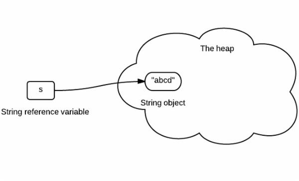 s 中保存了string对象的引用。下面的箭头可以理解为“存储他的引用”。