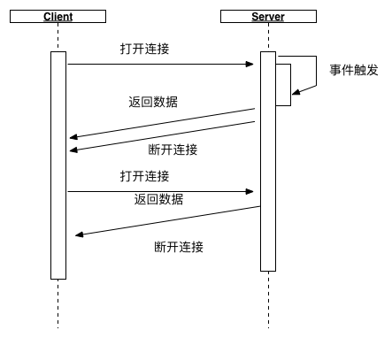 这种方式是使用比较多的长轮询模式。客户端打开一个到服务器端的 Ajax 请求然后等待响应;服务器端需要一些特定的功能来允许请求被挂起,只要一有事件发生,服务器端就会在挂起的请求中送回响应并关闭该请求。客户端 JavaScript 响应处理函数会在处理完服务器返回的信息后,再次发出请求,重新建立连接。如此循环
