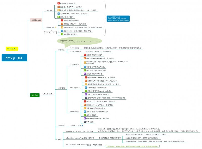 整理一份 MySQL DDL 的思维导图,介绍5.5版本以及之前 和 5.6 版本的 MySQL DDL 执行的方式和需要注意的参数。