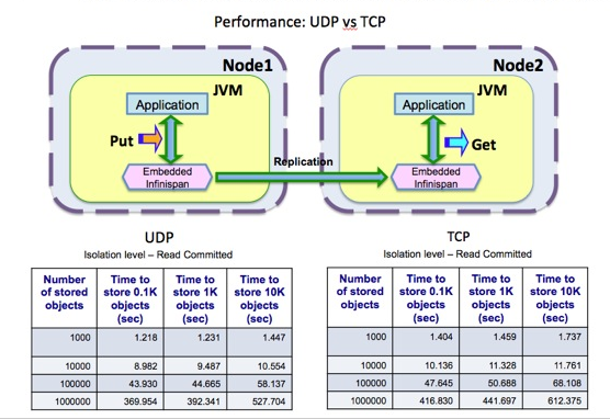 Infinispan 是个开源的数据网格平台。它公开了一个简单的数据结构(一个Cache)来存储对象。虽然可以在本地模式下运行Infinspan,但其真正的价值在于分布 式,在这种模式下,Infinispan可以将集群缓存起来并公开大容量的堆内存。这可比简单的复制强大的多,因为它会为每个结点分配固定数量的副本——服 务器故障的一种恢复手段——同时还提升了可伸缩性,这是由于存储每个结点所需的工作量是与集群大小息息相关的。