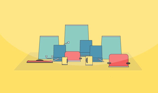 <g id="can-2"> <polygon id="can-2-body" points="389.1 193.7 259.5 193.7 265.8 53.6 382.5 53.6 389.1 193.7" fill="#70c1b3" stroke="#000" stroke-miterlimit="10"/> <rect id="can-2-rim" x="265.8" y="53.6" width="116.8" height="3.82" fill="#d4d5d6" stroke="#000" stroke-miterlimit="10"/> <rect id="can-2-handle" x="257.2" y="149" width="24.7" height="2.49" rx="1.2" ry="1.2" transform="translate(-37.7 121.2) rotate(-23.7)" fill="#d4d5d6" stroke="#000" stroke-miterlimit="10"/> <rect id="can-2-handle-joint" x="279" y="140.7" width="6.6" height="8.58" fill="#d4d5d6" stroke="#000" stroke-miterlimit="10"/> </g> <g id="bucket-2"> <polygon id="bucket-2-body" points="405 211.5 340.6 211.5 342.2 133.9 403.5 133.9 405 211.5" fill="#247ba0" stroke="#000" stroke-miterlimit="10"/> <rect id="bucket-2-rim" x="339.4" y="197.6" width="66.7" height="20.49" fill="#247ba0" stroke="#000" stroke-miterlimit="10"/> <rect id="bucket-2-detail" x="340.6" y="211.1" width="65.5" height="2.41" fill="#d4d5d6" stroke="#000" stroke-miterlimit="10"/> </g> <g id="can-3"> <polygon id="can-3-body" points="556.1 231.7 445.8 231.7 454.7 111.6 549 111.6 556.1 231.7" fill="#70c1b3" stroke="#000" stroke-miterlimit="10"/> <rect id="can-3-rim" x="454.7" y="111.6" width="94.6" height="4.15" fill="#d4d5d6" stroke="#000" stroke-miterlimit="10"/> </g> <g id="can-1"> <polygon id="can-1-body" points="237.3 231.7 127 231.7 135.9 111.6 230.2 111.6 237.3 231.7" fill="#70c1b3" stroke="#000" stroke-miterlimit="10"/> <rect id="can-1-rim" x="135.9" y="111.6" width="94.6" height="4.04" fill="#ccc" stroke="#000" stroke-miterlimit="10"/> <g id="can-1-handle"> <path d="M197.5,216.9v4.8a5.3,5.3,0,0,1-5.3,5.2H174.1a4.8,4.8,0,0,1-4.6-4.9v-5.1h-3V224a4.9,4.9,0,0,0,4.7,4.9h23.9a5.4,5.4,0,0,0,5.4-5.2v-6.8h-3Z" fill="#d4d5d6" stroke="#000" stroke-miterlimit="10"/> <rect x="164" y="213.7" width="8.6" height="5.14" fill="#d4d5d6" stroke="#000" stroke-miterlimit="10"/> <rect x="194.2" y="213.7" width="8.6" height="5.14" fill="#d4d5d6" stroke="#000" stroke-miterlimit="10"/> </g> </g> <g id="bucket-3"> <polygon id="bucket-3-body" points="455.8 239.5 391.4 239.5 393.1 161.9 454.2 161.9 455.8 239.5" fill="#247ba0" stroke="#000" stroke-miterlimit="10"/> <rect id="bucket-3-rim" x="390.2" y="225.6" width="66.7" height="20.49" fill="#247ba0" stroke="#000" stroke-miterlimit="10"/> <rect id="bucket-3-detail" x="391.4" y="235.9" width="65.5" height="1.8" fill="#d4d5d6" stroke="#000" stroke-miterlimit="10"/> <rect id="bucket-3-handle" x="431.5" y="234.1" width="33.1" height="3.33" transform="matrix(0.87, 0.5, -0.5, 0.87, 177.92, -192.42)" fill="#d4d5d6" stroke="#000" stroke-miterlimit="10"/> </g> <g id="bucket-1"> <polygon id="bucket-1-body" points="269.6 236.4 205.2 236.4 206.7 158.8 267.8 158.8 269.6 236.4" fill="#247ba0" stroke="#000" stroke-miterlimit="10"/> <rect id="bucket-1-rim" x="204" y="222.6" width="66.7" height="20.49" fill="#247ba0" stroke="#000" stroke-miterlimit="10"/> <rect id="bucket-1-detail" x="204.5" y="233.8" width="65.6" height="1.94" fill="#d4d5d6" stroke="#000" stroke-miterlimit="10"/> <rect id="bucket-1-handle" x="198.3" y="232.7" width="35.8" height="3.66" transform="translate(-76.1 106.8) rotate(-23.7)" fill="#d4d5d6" stroke="#000" stroke-miterlimit="10"/> </g> <g id="pot-1"> <path id="pot-1-body" d="M275.1,191.7h54.6a13.1,13.1,0,0,1,13.1,13.1v39.8a0,0,0,0,1,0,0H263a0,0,0,0,1,0,0V203.8A12.1,12.1,0,0,1,275.1,191.7Z" fill="#f25f5c" stroke="#000" stroke-miterlimit="10"/> <rect id="pot-1-rim" x="263" y="238.2" width="81.1" height="6.34" fill="#d4d5d6" stroke="#000" stroke-miterlimit="10"/> <rect id="pot-1-handle-R" x="337.7" y="224.5" width="13" height="7.18" rx="3.6" ry="3.6" fill="#50514f" stroke="#000" stroke-miterlimit="10"/> </g> <g id="pot-2"> <path id="pot-2-body" d="M503.6,205.6h73.3A13.1,13.1,0,0,1,590,218.7v52.2a0,0,0,0,1,0,0H491.5a0,0,0,0,1,0,0V217.7A12.1,12.1,0,0,1,503.6,205.6Z" fill="#f25f5c" stroke="#000" stroke-miterlimit="10"/> <rect id="pot-2-handle-R" x="580.5" y="249.9" width="18.9" height="7.18" rx="3.6" ry="3.6" fill="#50514f" stroke="#000" stroke-miterlimit="10"/> <rect id="pot-2-handle-L" x="482" y="248.4" width="18.9" height="7.18" rx="3.6" ry="3.6" fill="#50514f" stroke="#000" stroke-miterlimit="10"/> <rect id="pot-2-rim" x="489" y="268.4" width="103.3" height="4.5" fill="#d4d5d6" stroke="#000" stroke-miterlimit="10"/> </g> <g id="lid-1"> <ellipse id="lid-1-handle" cx="134.3" cy="240.7" rx="19.5" ry="6" fill="#50514f" stroke="#000" stroke-miterlimit="10"/> <path id="lid-1-body" d="M200.8,250.3H67.8c0-7.5,6.1-13.6,12.7-10H186.4c8.3-3.6,14.4,2.5,14.4,10h0Z" fill="#f25f5c" stroke="#000" stroke-miterlimit="10"/> <rect id="lid-1-rim" x="67.8" y="246.3" width="133" height="2.82" fill="#d4d5d6" stroke="#000" stroke-miterlimit="10"/> </g> <g id="cup-2"> <rect id="cup-2-body" x="370.9" y="216.1" width="34.9" height="47.53" fill="#ffe066" stroke="#000" stroke-miterlimit="10"/> <rect id="cup-2-rim" x="370.9" y="259.7" width="35.5" height="3.86" fill="#d4d5d6" stroke="#000" stroke-miterlimit="10"/> <path id="cup-2-handle" d="M380.5,224.1c-4,0-8,6.2-8,13.8s4,13.8,8,13.8V224.1Z" fill="#50514f" stroke="#000" stroke-miterlimit="10"/> </g> <g id="cup-1"> <rect id="cup-1-body" x="249.2" y="221.1" width="27.5" height="39.76" fill="#ffe066" stroke="#000" stroke-miterlimit="10"/> <rect id="cup-1-rim" x="249.2" y="258" width="27.5" height="2.82" fill="#d4d5d6" stroke="#000" stroke-miterlimit="10"/> <path id="cup-1-handle" d="M273.9,251.7c2.7,0,5.1-5,5.1-11.1s-2.5-11-5.2-11v22.1Z" fill="#50514f" stroke="#000" stroke-miterlimit="10"/> </g>