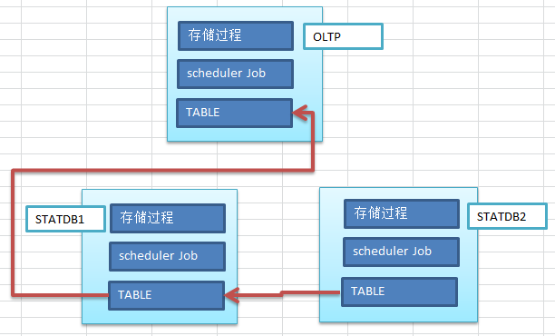 大体的环境情况如下,有一台线上库OLTP,其中也有会自己的存储过程,job,结合起来处理一些数据,当然作为统计系统而言,目前有两套统计系统STATDB1,STATDB2,都哟裇相关业务的划分,两者会有一些交集。