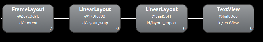 private ViewStubviewStub; protected void onCreate(BundlesavedInstanceState) { super.onCreate(savedInstanceState); setContentView(R.layout.layout_main2); viewStub = (ViewStub) findViewById(R.id.stub_image); //viewStub.inflate();//方式一 viewStub.setVisibility(View.VISIBLE);//方式二 ImageViewimageView = (ImageView) findViewById(R.id.imageView); imageView.setImageResource(R.drawable.image); } 示例View层级截图如下: