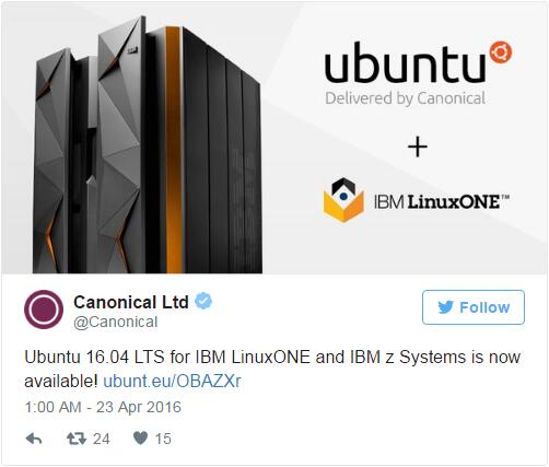 4月22号的时候,Canonical很高兴地宣布了Ubuntu 16.04 LTS(Xenial Xerus)已正式支持IBM z Systems和LinuxONE大型机的消息。该长期支持版本经历了六个月的开发,并且已经在4月21号那天正式发布了面向桌面、服务器和云端的64位(amd64)、32位(i386)、ARM64(AArch64)、ArmHardFloat(armhf)、以及PowerPC Little Endian(PPC64el)架构的版本。
