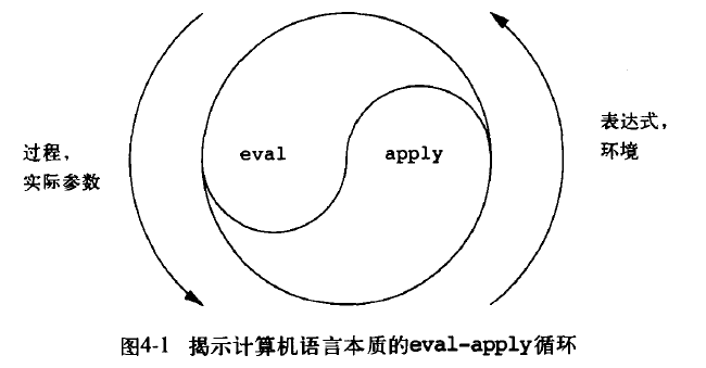 4.1 小节告诉我们 语言的解释器自身也是一个过程 而已,送给它的输入是相应语言的表达式(即程序),它就会完成该表达式要求做的动作。所以我们完全可以用 Scheme 写出一个 Scheme 的解释器,学习求值器实现,有助于理解语言本身和语言实现中的问题。而且 Scheme 语言有强大的符号处理能力,特别适合用于做这种工作。