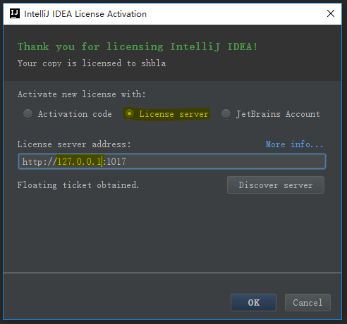 第二种是,目前用的是让Intellij IDEA 链接 认证(激活)服务器,激活编辑工具。