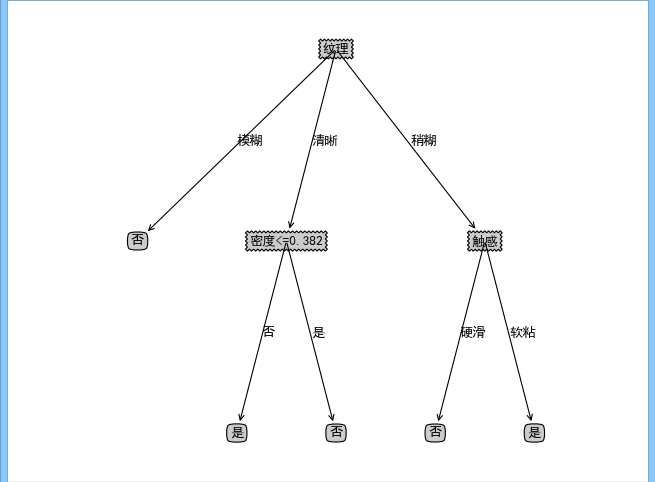此决策树用来判断一个具有纹理,触感,密度的西瓜是否是“好瓜”。