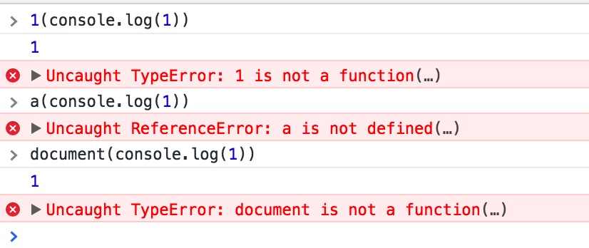 常量或已声明的变量及函数+(jscode) 经过解释器的优先级会先执行(jscode)随后报错:VM98:2 Uncaught TypeError: xxxx is not a function(…)