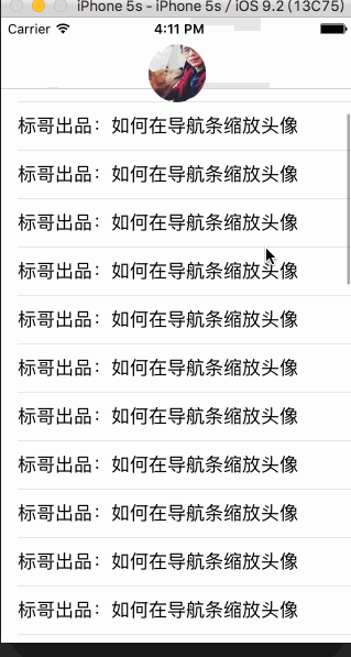 在很多的App中经常有上下滚动时用户头像也跟着变化,而用户头像是放在系统的导航条上的。可能有朋友们尝试过自定义导航view,其实没有必要,直接使用系统自带的导航即可!