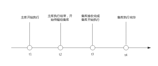 理论上主库有更新时,备库都存在延迟,且延迟时间为备库执行时间+网络传输时间即t4-t2。
