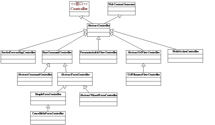 还记得第二章的HelloWorld吗?我们的HelloWorldController实现Controller接口,Spring默认提供了一些Controller接口的实现以方便我们使用,具体继承体系如图4-1: