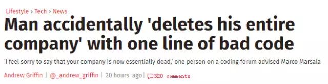 Marco Marsala 是一家小型主机托管公司的老板,但是他最近遇到了一个天大的麻烦——由于脚本错误,他不慎删光了所有客户的数据。更糟糕的是,由于 Bash 脚本代码中包含了一行变量未定义的“rm -rf {foo}/{bar}”,连备份也连带着被干掉了——而在通常情况下,备份网络理应和正常的生产力基础设施隔离开的。