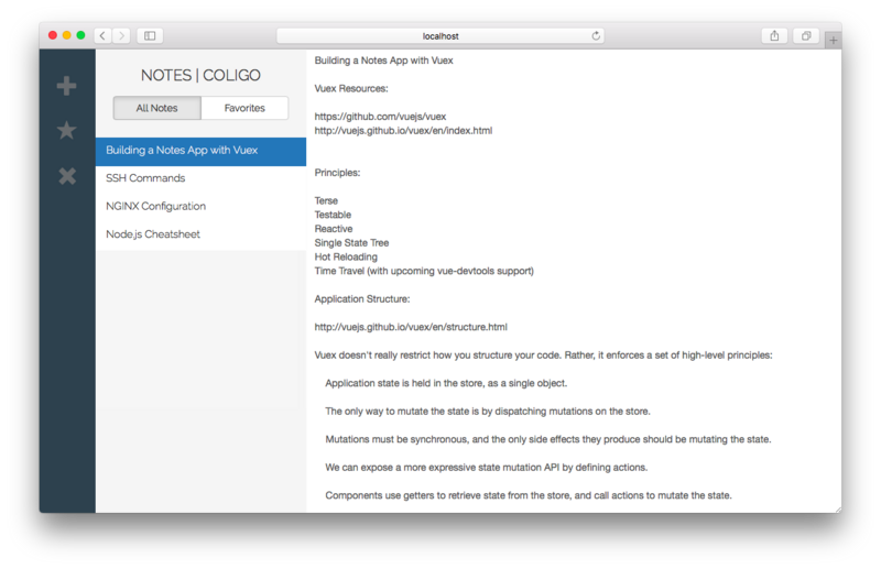在这个教程里面,我们会通过构建一个笔记应用来学习怎么用 Vuex。我会简单地介绍一下 Vuex 的基础内容, 什么时候该用它以及用 Vuex 的时候该怎么组织代码,然后我会一步一步地把这些概念应用到这个笔记应用里面。