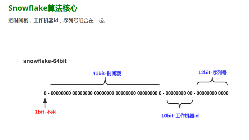 在当前的互联网类产品中,如何高效可用的生成的一个全局自增ID,是一个比较有挑战性的工作。我见过的一般的做法其实就是时间戳再加固定长度的随机 字符串。这个方案其实有两个问题,一个是生成的自增ID的可读性,另外就是随机,并不是真正的唯一,它是一个碰撞概率的。其它方案,如依赖数据的自增 ID,如果多个库,可以通过不同的步长来实现可读的序列。不过,这其实性能上肯定不可能很高。另外,会有单点的问题。所以,果断放弃。在查看了目前比较成 熟的snowfake方案之后,感觉不错。下图是它的算法核心