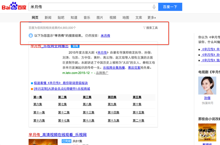 目前最普遍的中文输入方式是拼音输入法,用户输入拼音,输入法给出候选词,但是由于用户误选或无需要候选词时,query就有可能出错。虽然相较之前智能输入法现在已经足够强大,但仍有一些新的产品、小说、影视作品,输入法可能会覆盖不到。比如一些新奇网络词汇的出现,传统的词典已经无法包括这些词。还有一些较为陌生的词,比如“芈月传”,很多人都是听朋友介绍很好看,结果去搜索引擎中搜索相关信息,很多人只知道第一个字发音是“mi”,但实际是哪个字却不确定。