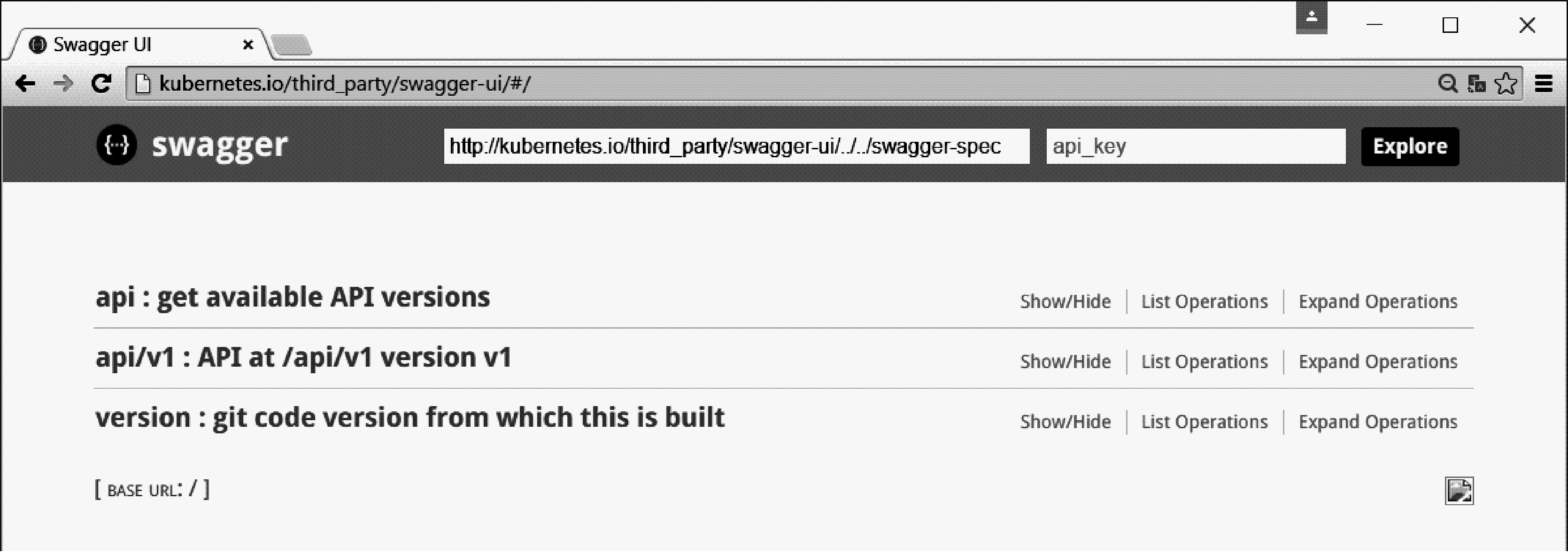 为了方便查阅API接口的详细定义,Kubernetes使用了swagger-ui提供API在线查询功能,其官网为http://kubernetes.io/third_party/swagger-ui/,Kubernetes开发团队会定期更新、生成UI及文档。Swagger UI是一款REST API文档在线自动生成和功能测试软件,关于Swagger的内容请访问官网http://swagger.io。