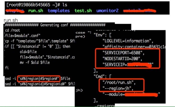 我上次的分享中已经给大家展示了通过发布系统的方式来完整的实现一次持续集成和发布过程。下面这个用Docker来做发布的案例,这个是QCon上某服务厂商的分享(注明:仅做对比使用),可以看到,对于多环境的判断、端口的设定、启动的方式、配置的路径等等,这些全部也都是用脚本一行行实现出来的。