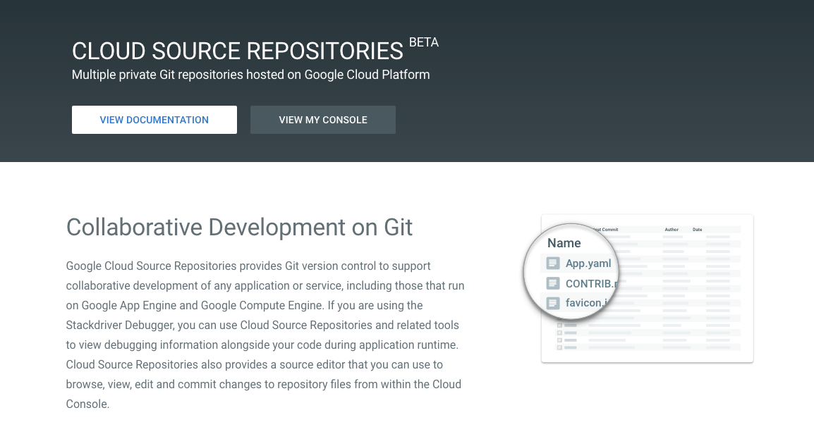 其实,Google 云平台上有一个 Cloud Source Repositories 服务,这就是我们需要的私有 Git 仓库功能。这个服务本意是让你的项目方便地在 Google Cloud 上集成和调试,但是你也可以只使用这个服务,当成你的免费私有仓库。以前 Google Cloud 中一个项目只能有一个仓库,用起来不方便,现在一个项目中可以建任意多个私有仓库了。Cloud Source Repositories beta 版服务是完全免费的,存储上限是 500M ,一般存储源码等文本文件是足够用的。