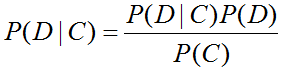 上面公式中, P(C|D) 是在事件 C 发生的情况下事件 D 发生的可能性。在我们还没有掏出任何物品之前, P(D)= 0.5 ,因为我们尚未获得任何信息。实际应用这个公式时,必须知道 P(C|D) 和 P(C) ,或者能够间接求出这两个概率。