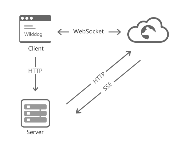 client与野狗云端通过Wilddog sdk连接。而用户的Server与野狗云端通过HTTP和SSE连接。这些都比较简单,可以通过