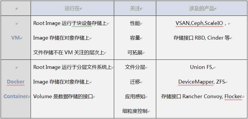 容器和VM,几乎所有人都会说容器就是一种比VM更轻更优的虚拟化技术。其实,我的理解不太一样,我认为容器和VM最大的不同在于容器不是VM。这个,不是废话么。仔细分析一下,容器的重点其实不在虚拟化技术,它叫Container, 并没有Virtual这个词。它的关注核心已经从冷冰冰的Machine,上升到了如何更好的去承载应用。这个是有本质区别的。VM关注的是如何让Machine更加高效,VM发展的再厉害,它也是一种更高级的Machine。它看待后端存储其实是和一个物理Machine看待后端存储是一致的。而容器呢,它希望后端存储对它来说是透明的,不用它关心的,它更加关心的是应用数据的组织形式。