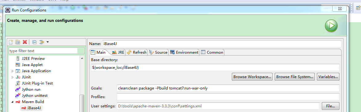 eclipse使用maven命令: mybatis-generator:generate生成mybatis文件; clean:clean package -P build tomcat7:run-war-only 启动tomcat7。