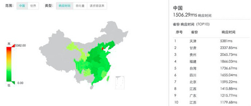 地域分析可以了解我们的用户都是从哪些地域使用APP,各地的响应时间是否存在很大差异,耗时较高的地区根据网络节点调整CDN,优化网站层面的性能问题。