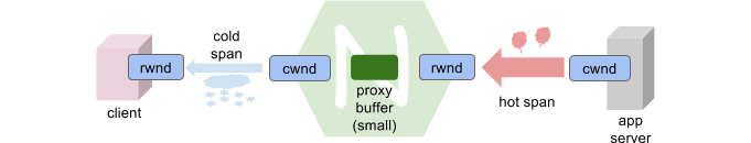 NGINX反向代理配置设置了两个网络 路径 :客户端到代理和代理到服务器。这两个路径不仅 “HTTP跨度(HTTP spans)” 不同,TCP网络传输域也不同。