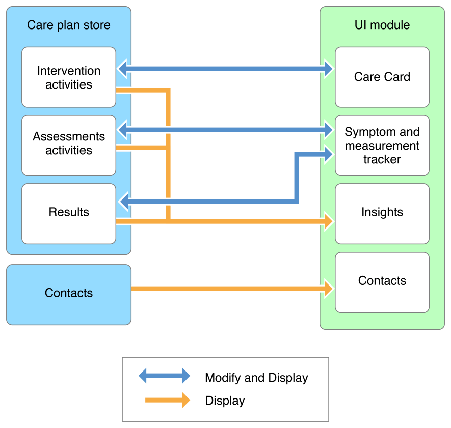 CareKit提供了6个模块来实现相应的特性,苹果希望这些特性能够帮助开发者创建面向医疗的应用,例如: