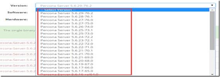 #在Version下拉框中选择具体的percona server的版本