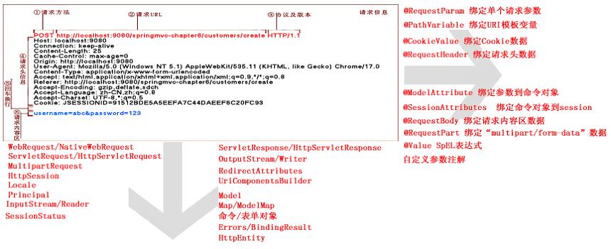 其他功能处理方法的形式参数类型(如HttpEntity、UriComponentsBuilder、SessionStatus、RedirectAttributes)将在后续章节详细讲解。