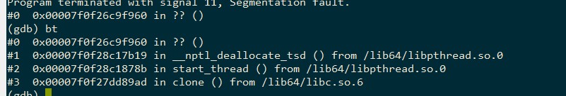 线上的服务退出时coredump,显示堆栈为: