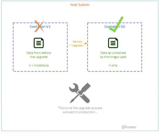 说到 docker ,持久存储是一个需要小心处理的问题。通常一个服务的升级流程是关停旧版本容器,然后拉取并启动新版本容器。默认情况下,旧版容器包含的所有数据都会被消除,我们当然不想这样。