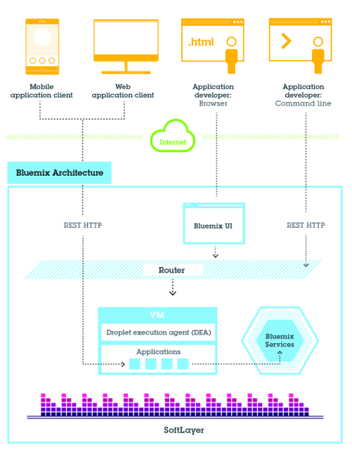 IBM® Bluemix™— 2014 年初在 IBM Cloud 环境中推出的一项关键技术 — 是一个单一解决方案环境,包含用于跨多种领域快速开发和部署应用程序的即时资源。您可以使用这个基于开放标准的平台构建、运行和管理 Web、移动、大数据和智能设备应用程序。Bluemix 支持许多流行的编程语言和框架。Java™ 技术、移动后端开发支持、应用程序监视、开源技术等等,都可以通过云中的服务模型来提供。