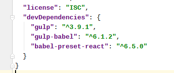`shell npm install gulp gulp-babel babel-preset-react --save-dev