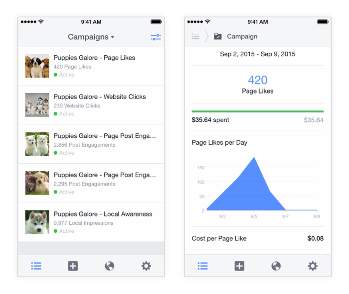 我们遇到的最大的挑战就是导航。为了导航广告主的广告和活动,我们想使用面包屑导航条。指引广告的创建流程,我们需要一个导向式的导航条。在最上面,非常重要的是需要使用合适的动画和手势操作,否则这个APP看起来还是像一个经过美化的website.