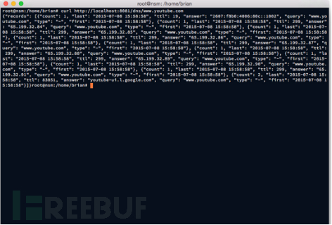 > curl http://localhost:8081/dns/www.youtube.com 很显然,用任何你想要查询的 IP 或者域名替换掉 www.youtube.com ,就可以了