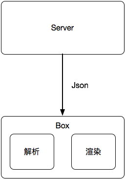 在最初的时候,我们的工程师采用Native View方案构建了一套名为Box的简单动态化系统(如图)。通过预先约定好前后端Json数据格式和解析规则,在Android、iOS端以相同的方式解析、渲染服务端数据,从而实现两个端的简单动态化页面。Box能做到图片以及链接的动态配置与变更,但Box最主要的问题是只能下发结构预先定义的数据,并且不能下发处理逻辑,这就造成Box系统的适用范围非常有限,只能处理预定结构的服务端数据,无法构建复杂的UI,无法支持个性化Native页面。