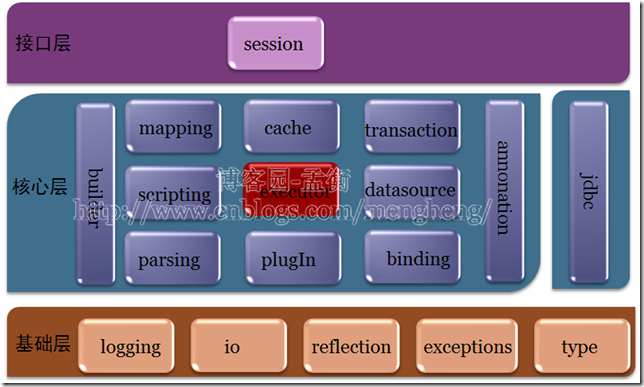 基础支撑层:负责最基础的功能支撑,包括连接管理、事务管理、配置加载和缓存处理,这些都是共用的东西,将他们抽取出来作为最基础的组件。为上层的数据处理层提供最基础的支撑。
