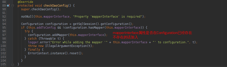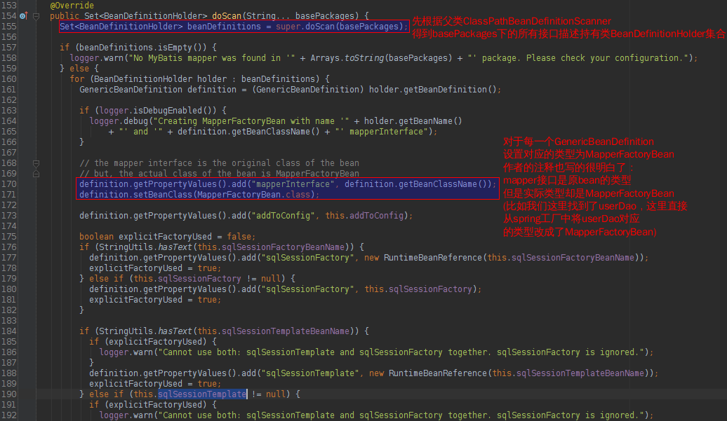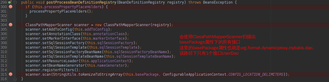 MapperScannerConfigurer本身涉及的spring的技术我就不多讲了,感兴趣且对spring原理比较了解的可以去看下它的源码。我们重点看一下它的三个属性: